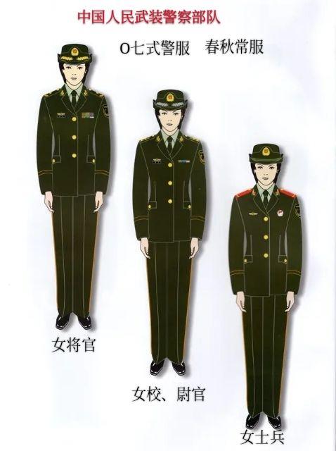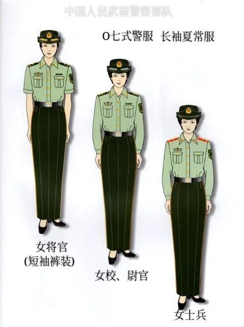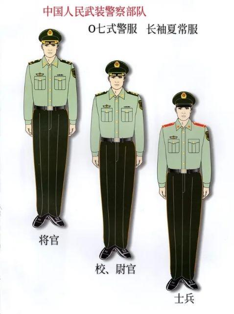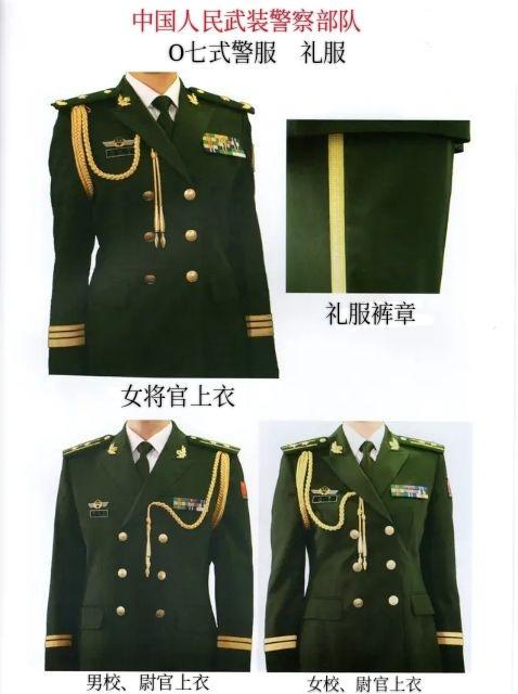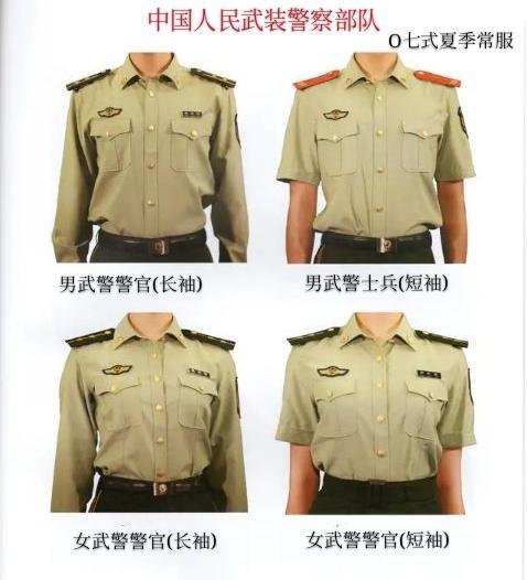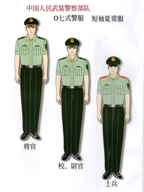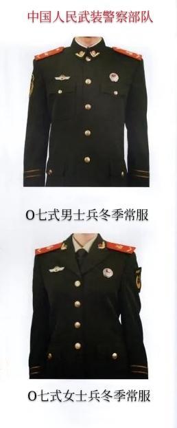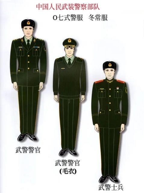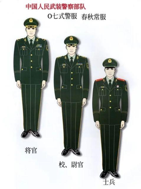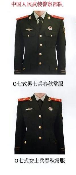 4.武警常服:分为春秋常服、夏服和冬常服。包括内穿衬衣、常服鞋、常服大衣。