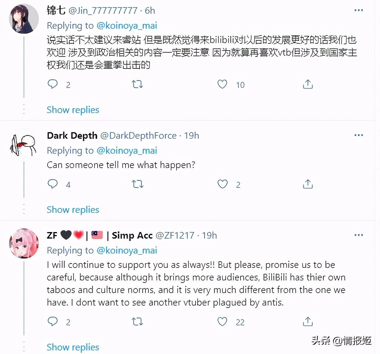 国内的用户也有表达出自己的担忧,希望她能够明白不要让这些政治因素影响到自己在B站的前程。