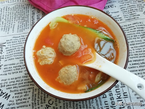 番茄肉丸汤:红绿搭配、口感微酸、好看又好吃