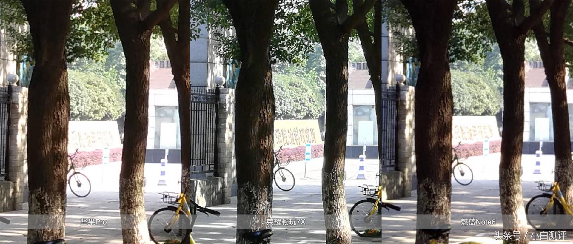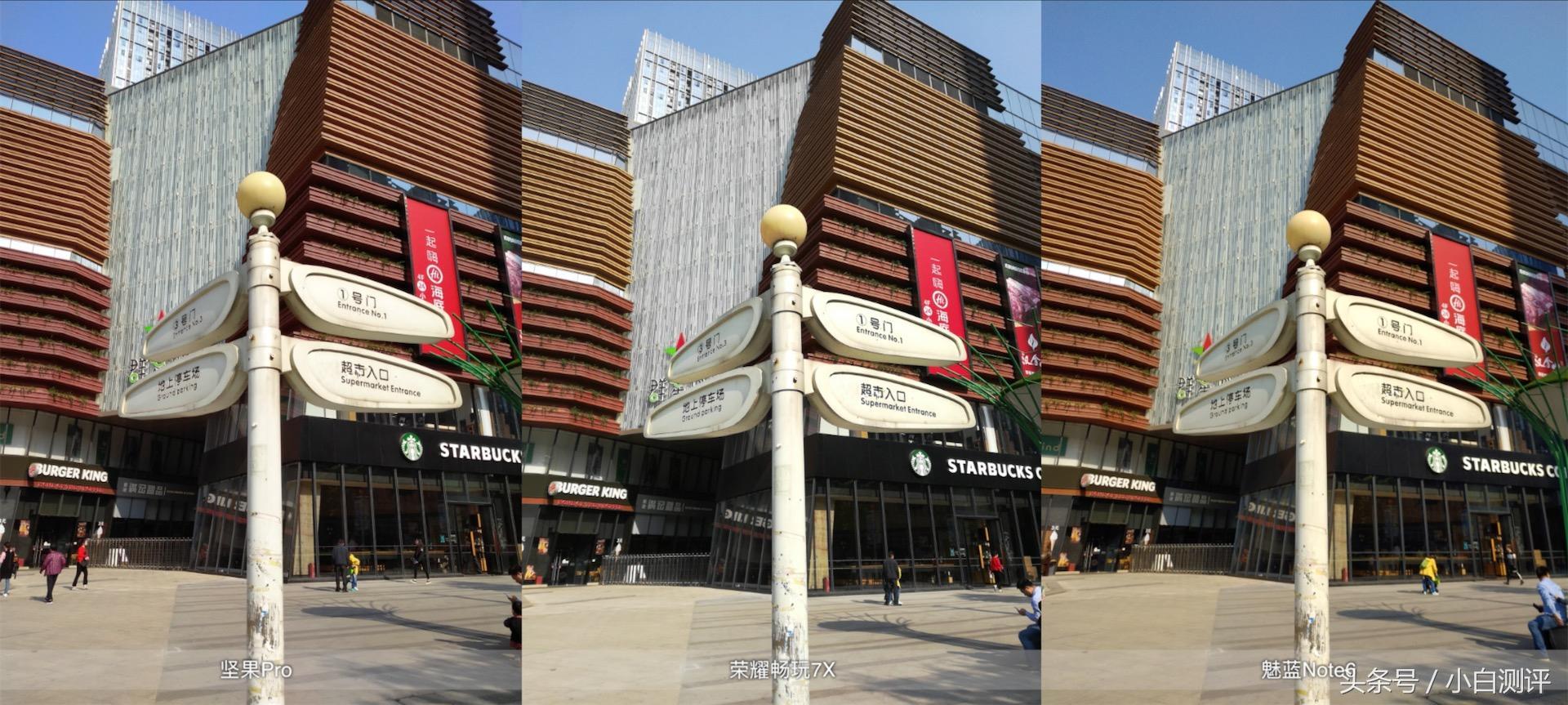 第一组白天样张,坚果Pro与note6有些偏暖,7X有点偏冷,note6的曝光是最暗的,7X曝光最