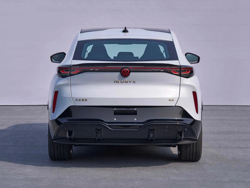 从外观上看,ID.UNYX 与众是大众首次采用金色标志的车型。其前大灯设计独特,将日间行车灯与两个 LED 矩阵大灯融为一体,形成了贯穿式前灯组。车辆的前保险杠造型夸张,内部设计有风道,有助于降低整车的空气阻力。车身侧面线条流畅,整体富有动感,类似的设计在大众以往车型中不太多见。