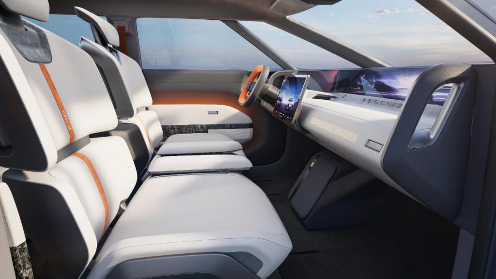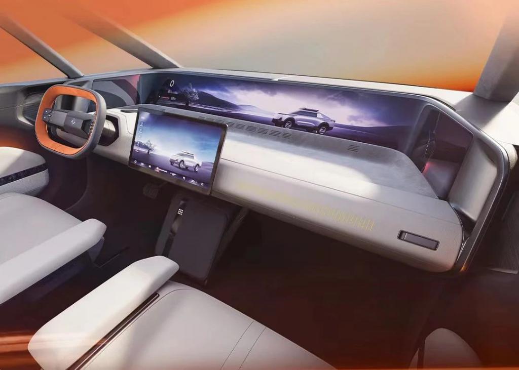 在内饰上,e π 2024 概念车用层次感设计融合运动科技与自然舒适,环抱感设计整合极简东方意境与信息环流能量,打造沉浸式用户体验。