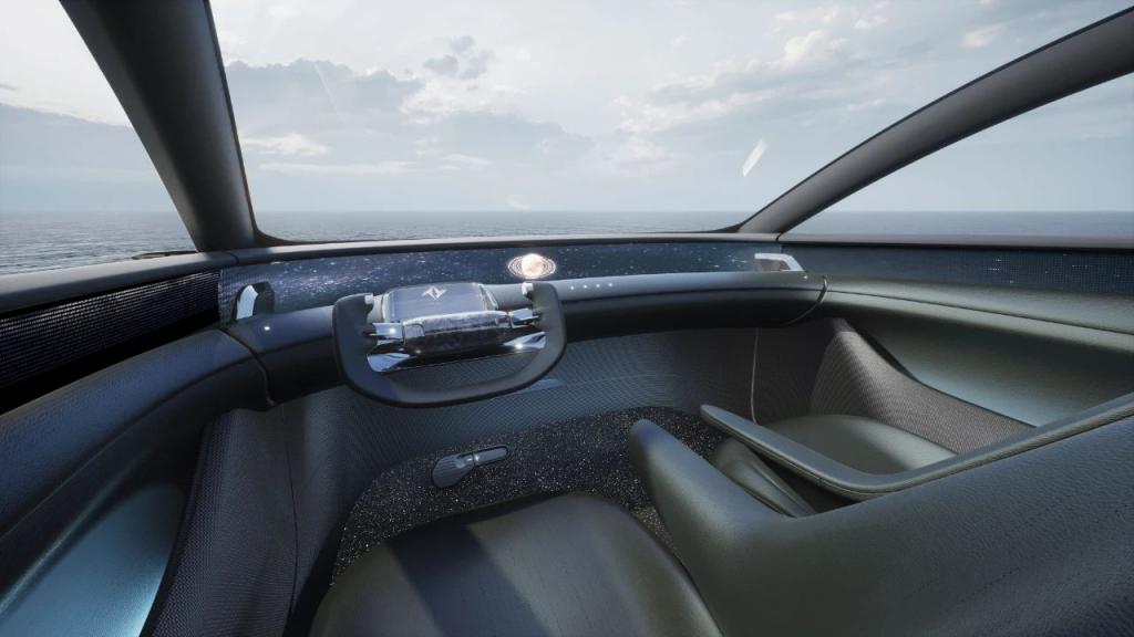 360 度环抱式 HMI 设计以 " 太空穿越和太空漫步 ] " 为主题,将极速驾驶感与奇幻新体验相结合,以动态形式呈现 " 穿梭恒星、陨石带、虫洞 " 等宇宙场景,在表达冒险精神的同时,也为用户带来浪漫的五感体验。