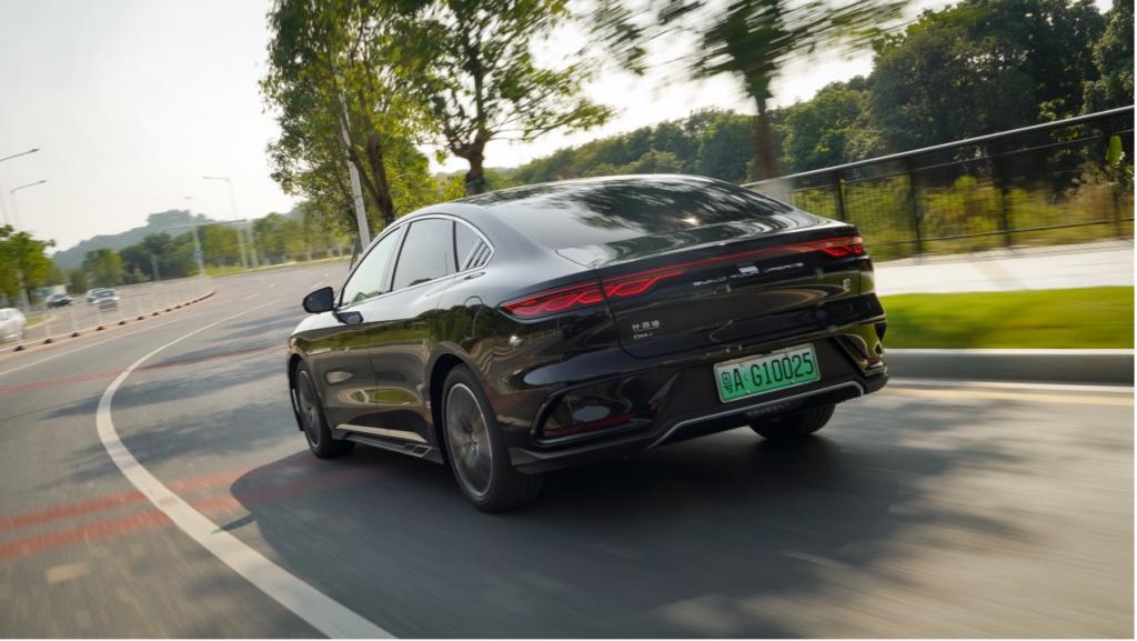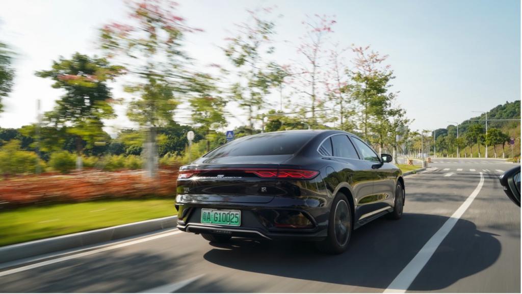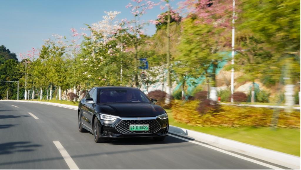 可一旦速度起来后,汉 DM-i 的悬架就似乎有点招架不住了,其车身跟随性较差,在连续快速变道的情况下车身响应会愈发迟钝,其调校特性与操控乐趣完全不沾边,奠定了它更适合行政商务的用车场景。