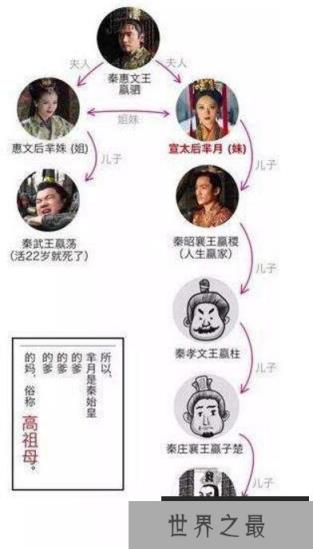 如果按照历史辈分来讲,芈月应该是秦始皇爷爷的奶奶,之间是相隔了5代人。