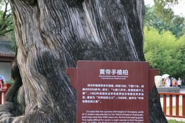 黄帝轩辕柏,目前位于陕西省黄陵轩辕庙中,被外国媒体誉为世界柏树之父。[bai]距今有着至少5000年的历史,这颗树也是世界上最古老的一颗柏树,其树高20米以上,树围7.8米。据统计目前陕西省的所有柏树总共多达128棵,而它们的树龄加起来可达10万6754岁,而树围总计376.25米,也就能够得到每283.73年粗一米的结论,那么按照1999年测得的轩辕柏树围就能推算出年龄。