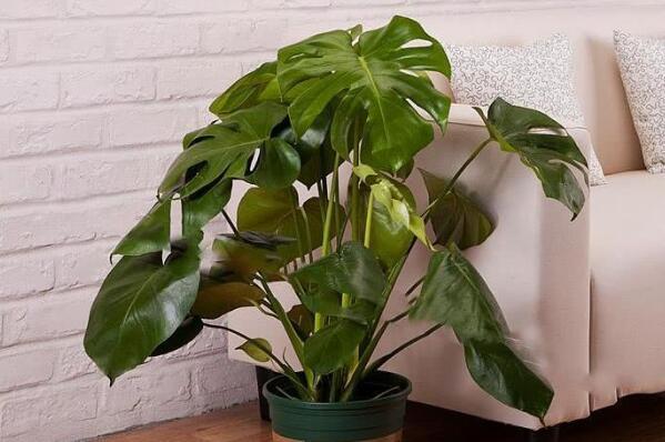 龟背竹是原产于墨西哥的一种室内大型盆栽观叶植物,因其叶形奇特,和龟背相似而得名,龟背竹能够有效清除空气中的甲醛等有害物质,被人们称为天然的清道夫。