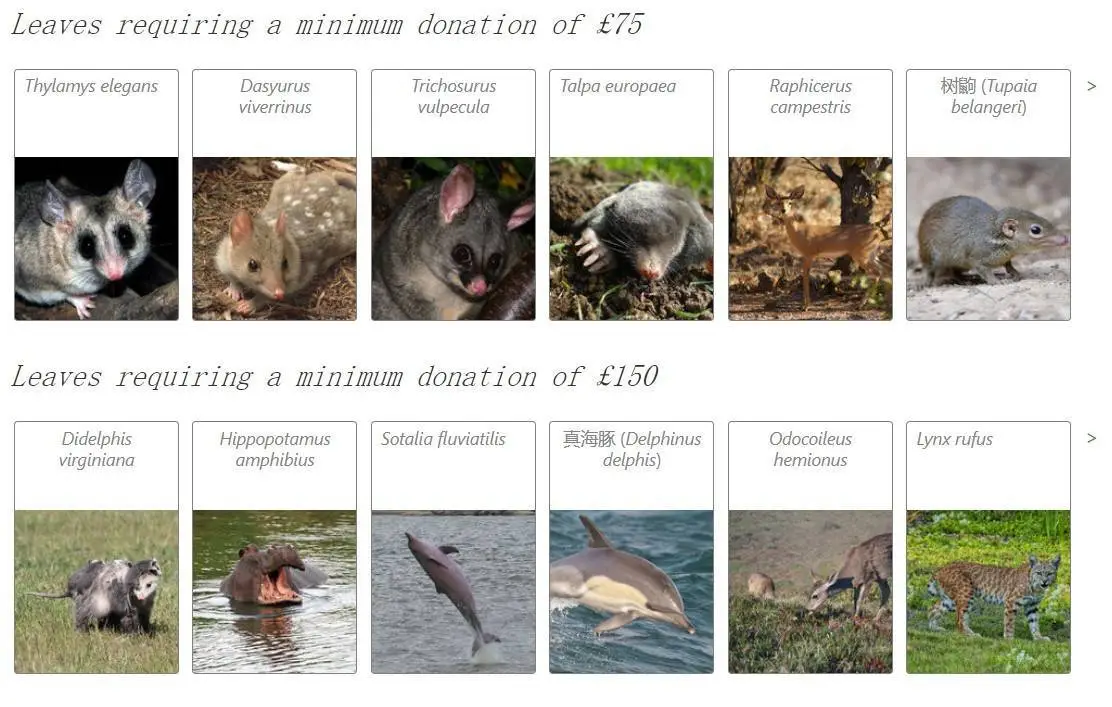 但可持续的运营需要资金支持,他们想出了一种赞助方式,邀请用户花钱为叶片——也就是某个物种——署上自己的名字。