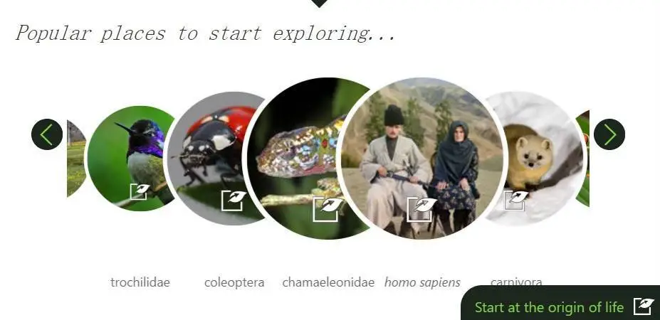 OneZoom 是一张在线交互式?生物地图,涵盖了几乎所有已知的物种,以及它们的进化过程和相互关系。