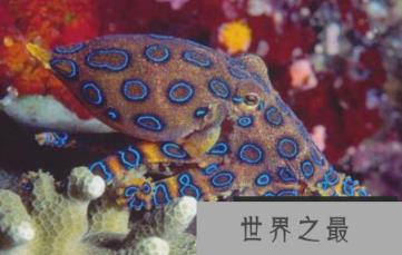 蓝环章鱼是世界上最有毒的动物之一。一只蓝环章鱼几分钟内就能毒死26名成年人,还没有在医学上解毒。幸运的是,这种章鱼通常不会主动攻击人,除非它受到威胁。