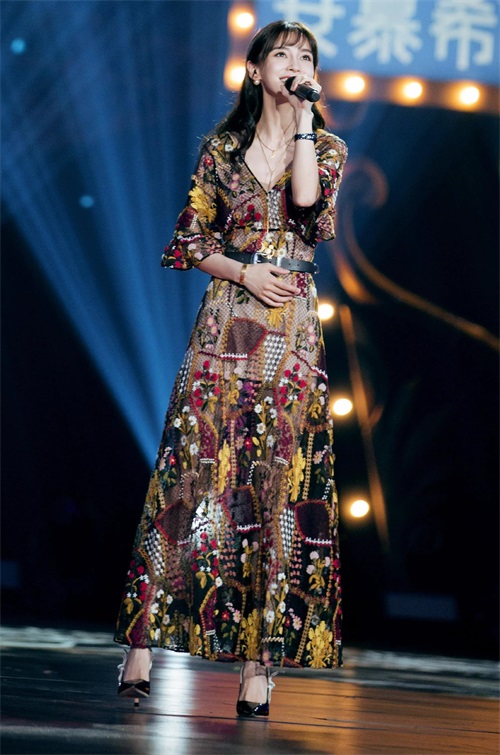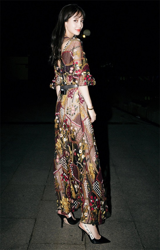 6.angelababy身穿半透连衣长裙,脚上穿的还是那双迪奥尖头高跟鞋,baby是真的喜欢这双高跟鞋呀。