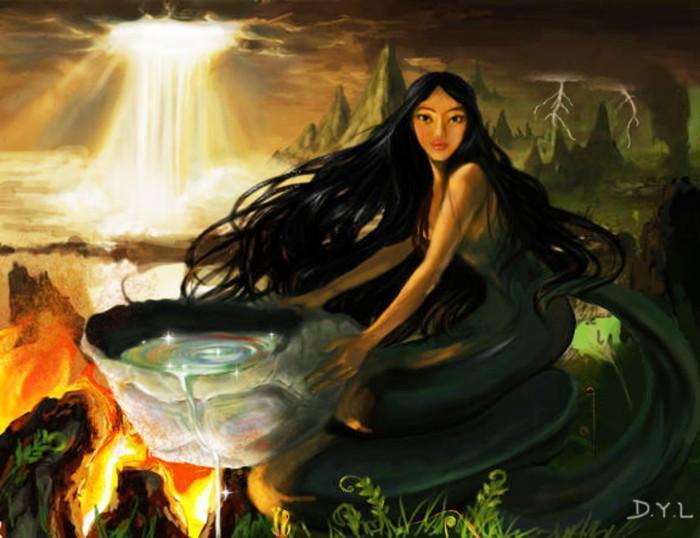 其次,蛇代表着“水”。众所周知,生命起源于水。而先民眼中,蛇身体柔软,行云流水,是雨神的象征,而古代中司管风雨的龙,也是蛇为身。除此之外,先天四灵中,属于北方,颜色属性为黑色,五行属性为水的玄武,也是有蛇组成的。上古神话中,女娲创造了生命,因此女娲是蛇身。