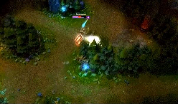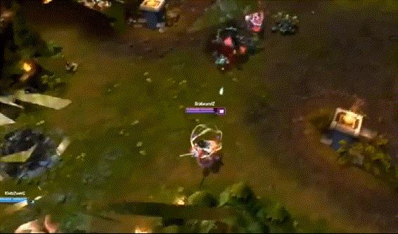 剑姬的大招很简单,无敌的同时对附近的所有敌方英雄发动五次随机突进攻击,每次造成160/330/500(1.2装备AD)的伤害,单体目标虽然伤害衰减,但是依然可以做到一个大招三分之一的血量,如果命中了四个不同的英雄,那么满级大招一共会造成2400+(5.8装备AD加成),目前在英雄联盟中绝对没有加成这么高的技能。