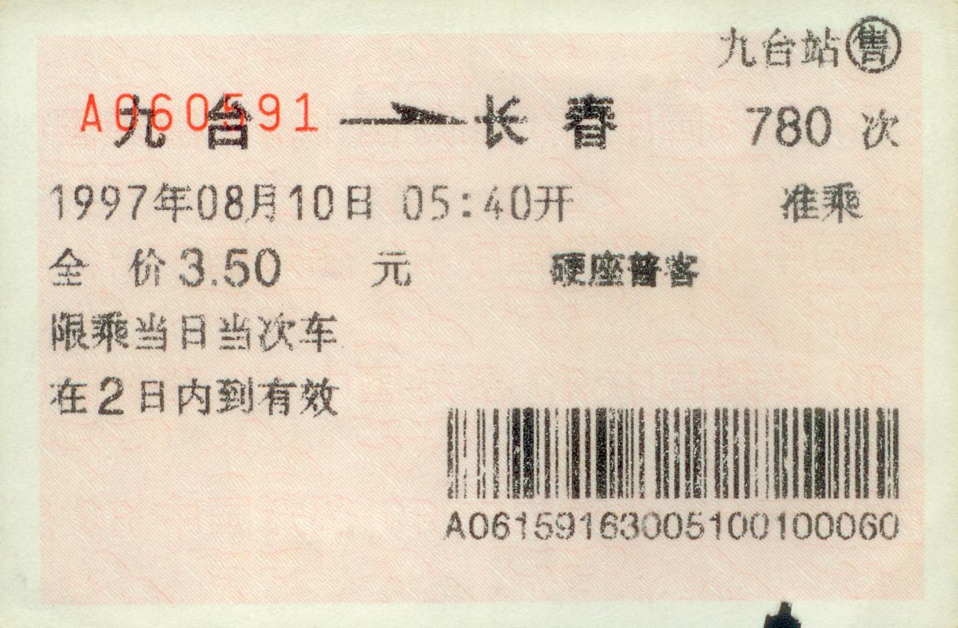 1996年中国铁路开始进行计算机售票,但是还没有全国联网,这是个人收藏的最早的计算机车票,1997年的780次。那时候的火车车次还没有Z、T、K之分。