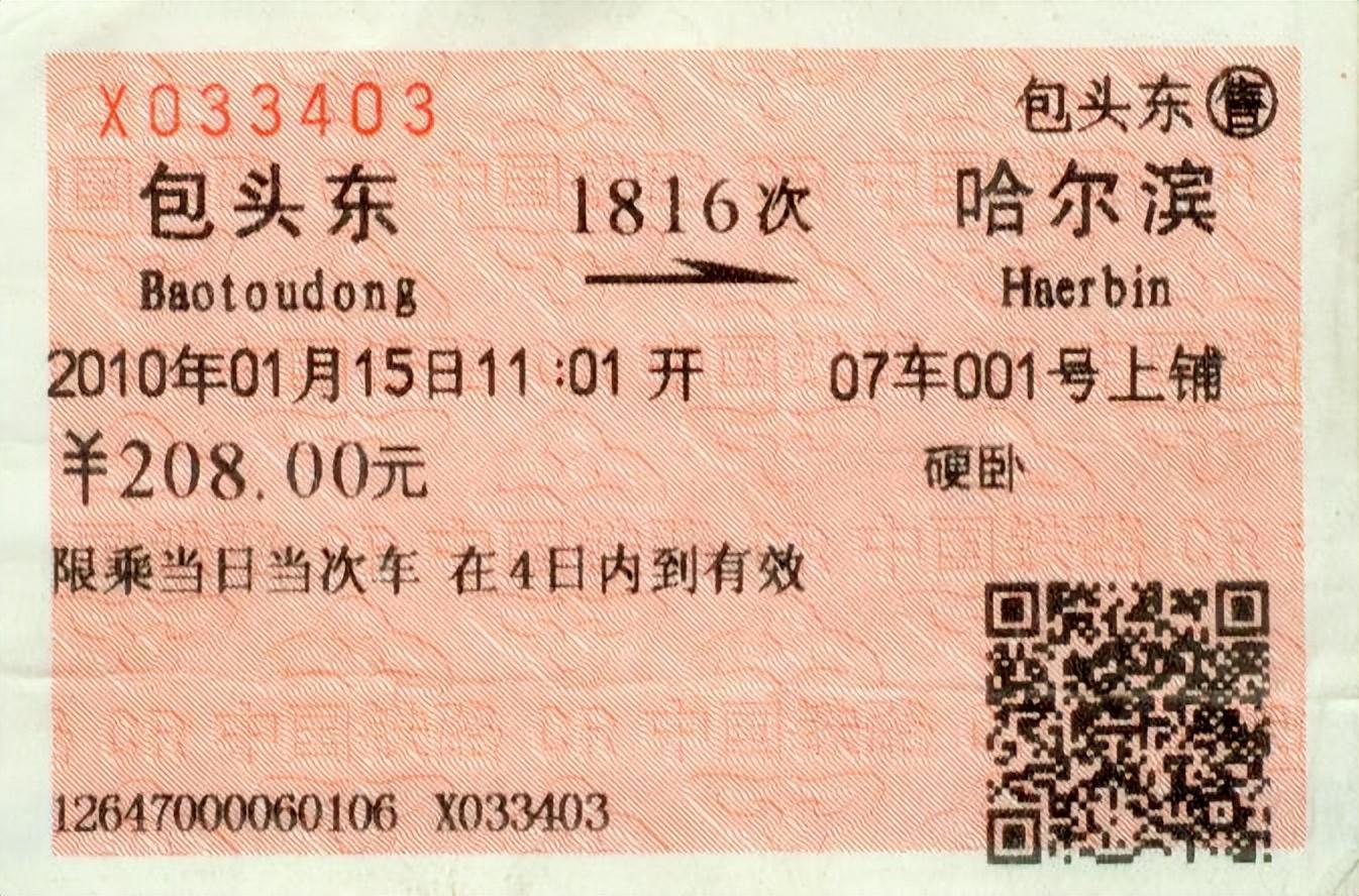这是收藏的一张特殊的磁介质车票(红票),车票没有二维码和条形码,可能是用了特殊的磁介质技术,可以刷车票检票吧。