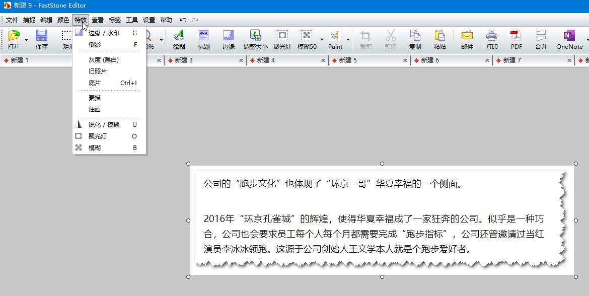 该软件还有一些特色功能,如对保存的图片进行特效处理。