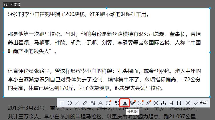 QQ截屏还有一个特殊功能,截图框下面点击剪刀图形实现长截图,在窗体内滚动鼠标完成长截图。
