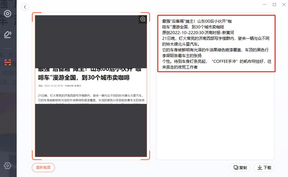这个截屏功能除了正常的标注保存外,还有一个图文识别功能,效果不错。