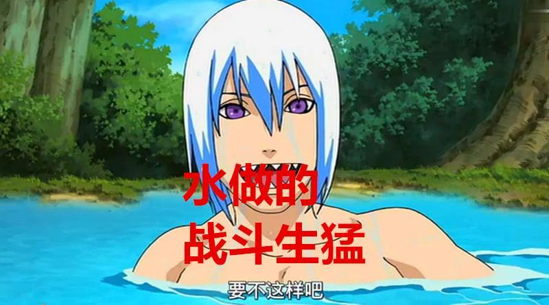 鬼灯水月也是名字中带水的,而且水月就连身体也是水做的,他因为忍术还是血脉的原因,可以把自己的身体变成水,可以使很多物理攻击无效化,但是水月平时有些胆小,经常说一些怂话,但是水月战斗起来那可以想当生猛的呢,所以水月被称为“说最怂的话,打最狠的仗”。