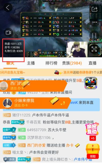 这些人气大概是当时直播间狂刷礼物和弹幕造就的热度,但同时段其他大主播基本都是100多万的样子。卢本伟回归之后自然是先对着观众感慨一番,说自己停播期间思考了很多,学到了很多,当然观众也不知道他学会了什么,关于被质疑开挂的事情,卢本伟的态度依旧坚定,表示自己会用时间证明自己真的没有开挂,大家有权利质疑,自己也不会去骂。随后玩了几把LOL之后就开始吃鸡。