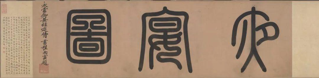 本幅无款。前隔水存南宋人残题“熙載風流清曠,爲天官侍郎,……”20字。引首有明初程南云篆书题“夜宴圖”三大字。卷后有南宋史弥远“紹勳”葫芦印,清·宋荦钤“商丘宋犖審定真迹”一印。拖尾有行书“韩熙载小传”,后有元·班惟志泰定三年(1326年)题诗,又积玉斋主人题识。后隔水清·王铎题跋,后有“董林居士”、“緯蕭草堂畫記”等收藏印。又有乾隆皇帝长跋及清内府诸收藏玺印。