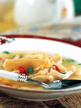 7.待煮至汤汁奶白时,放入枸杞,调入精盐、味精、胡椒粉烧开,撒入香葱花,淋入香油即可;【菜谱特点】: 味道清淡,汤汁鲜美。【制作要点】: 河蚌肉炒制的时间不要过长,否则肉质会变硬。