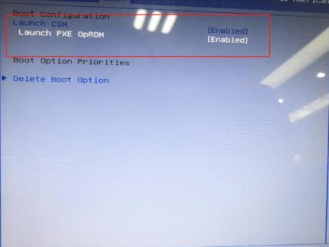 第二步,通过方向键进入boot项菜单,键入lunch csm项,将其设定为enabled,下方launch pxe oprom项设为enabled。按f10 保存退出,重启开始安装系统。