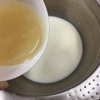 5、将吉利丁片液体倒入纯牛奶中,搅拌均匀。