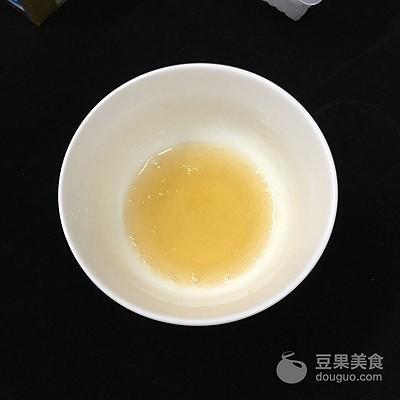 2、吉利丁片剪小块放入碗中,加入饮用水泡软,隔水加热至融化。