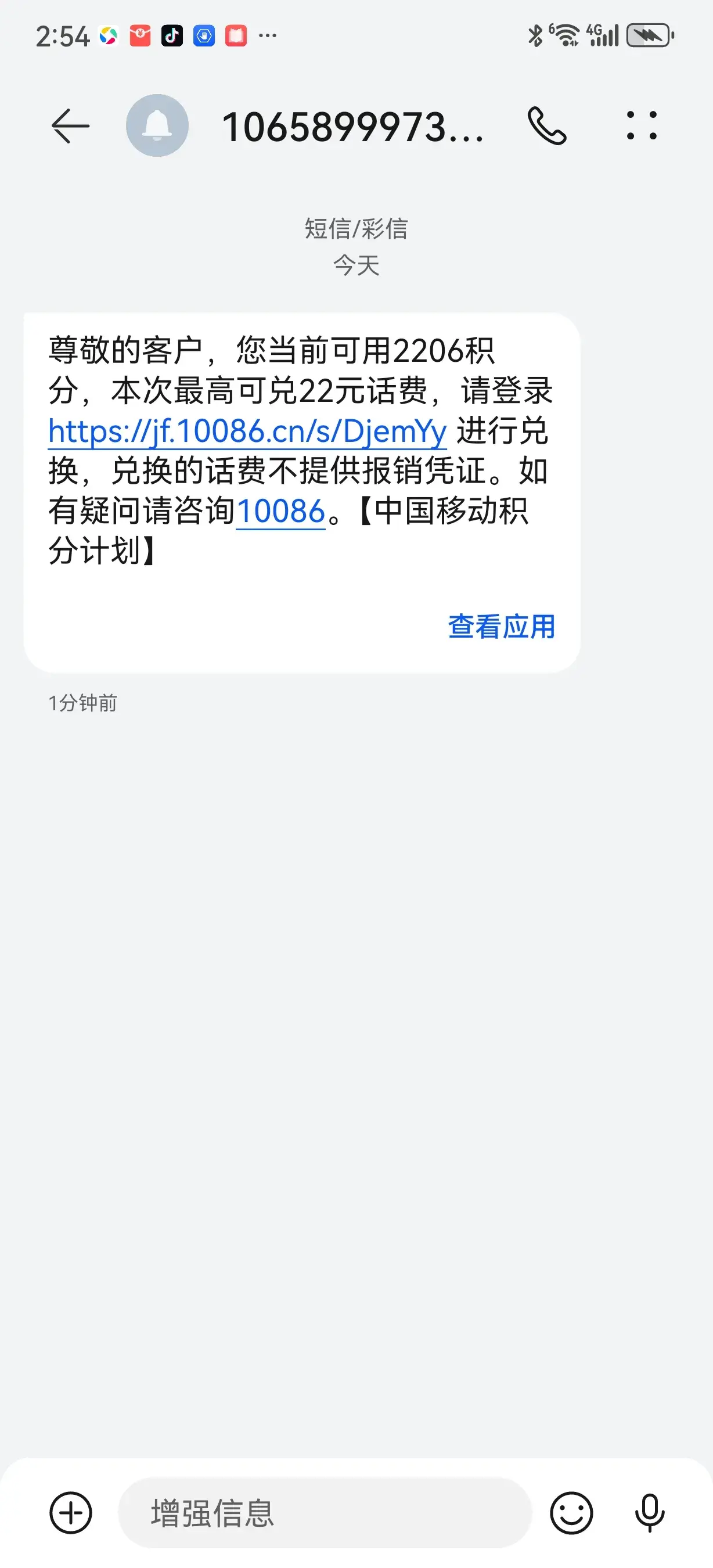 今天是2023年最后一天。抓紧移动号码积分兑话费了,过了今天,部分移动积分可就作废了。过程很简单,我已操作成功。1.编短信“HF〞发送到(10)658999,也可以先拔打1008611客服。