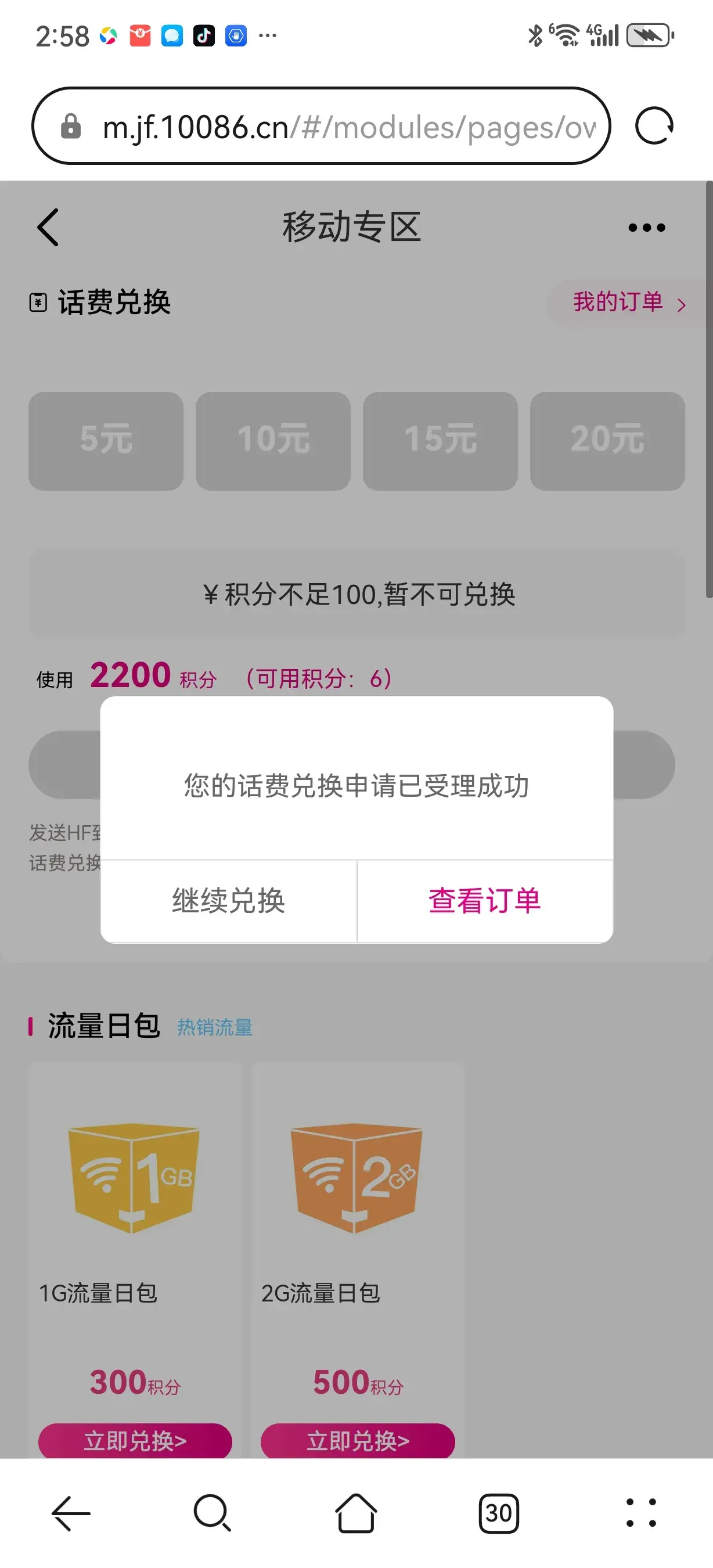 6.可以看到成功页面。#年终回馈送话费# #年底积分兑换啦#