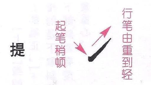 提又叫做挑,真正意义的提是“扌、㇊“的提。其他诸如”地、理“等字中的提,都是横画的变形,不过笔法都是一样的,只是角度、长短有所区别罢了,书写时注意区别。