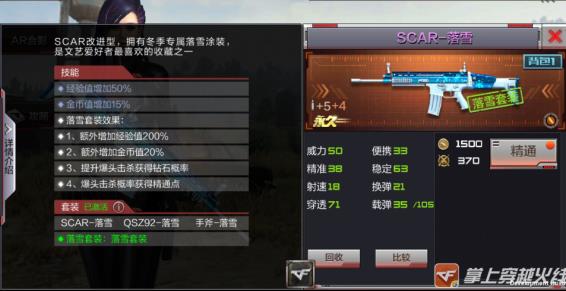 那么落雪套装的属性非常厉害,激活套装后可以额外增加200%的经验,早知道200%可是英雄武器的经验加成,并且爆头几率获得精通点,可以说是非常值得入手的一把武器了,你们会入手吗?