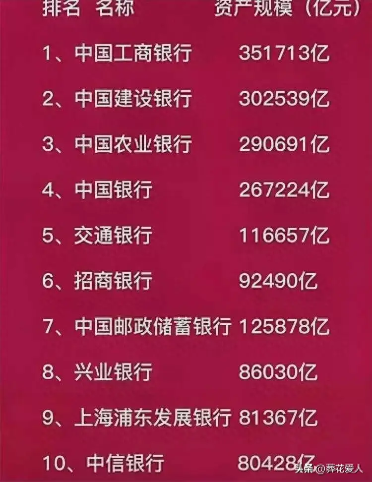 1. 工商银行,被誉为“宇宙行”,位居榜首,资产规模达到了惊人的351713亿元。