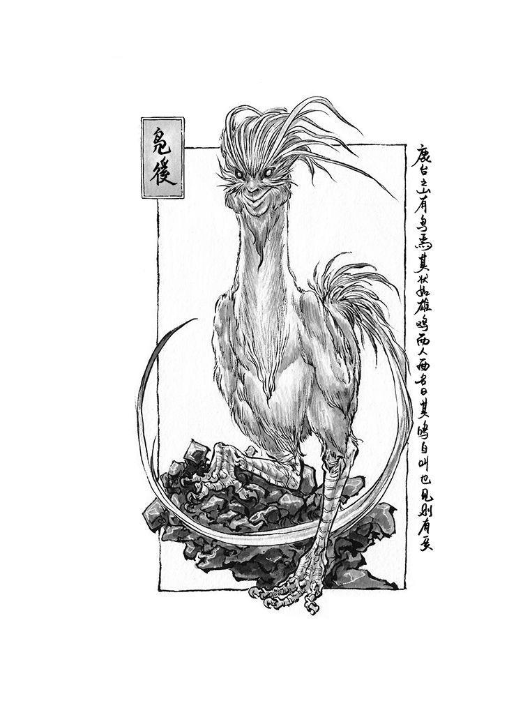 译文:再往西二百里,是座鹿台山,山上多出产白玉,山下多出产银,山中的野兽以[牛乍]牛、羬羊、白豪居多。山中有一种禽鸟,形状像普通的雄鸡却长着人一样的脸面,名称是凫徯,它的叫声就是自身名称的读音,一出现则天下就会有战争。