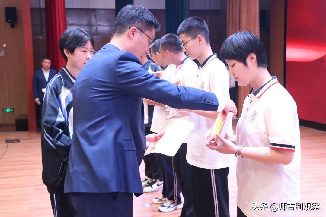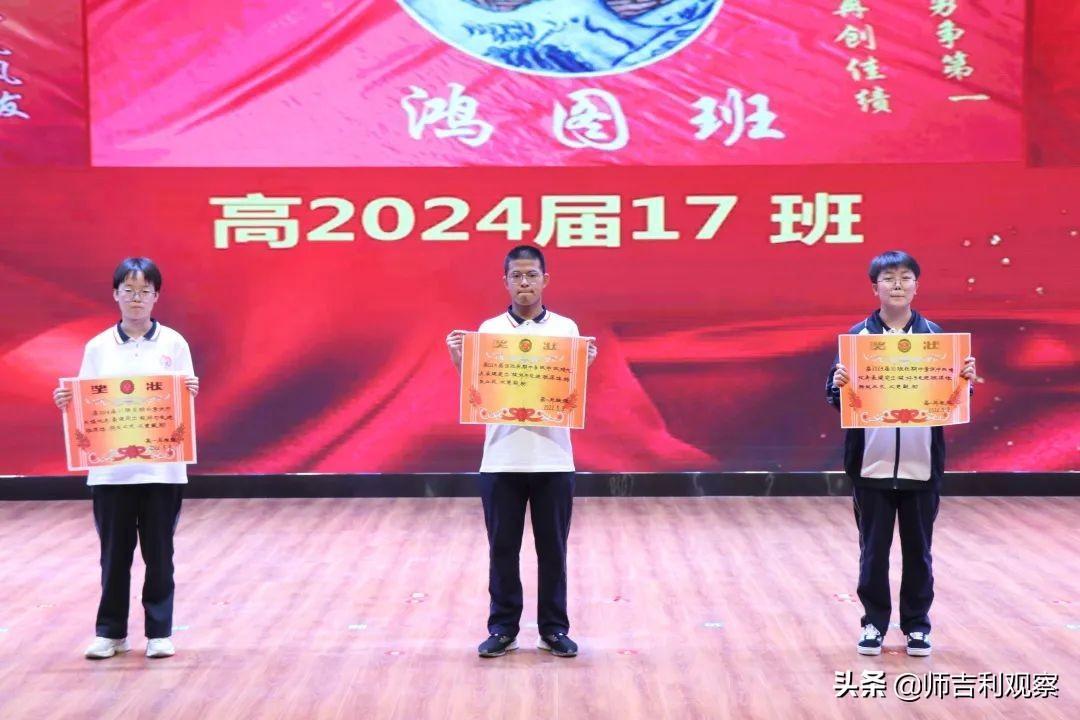 咸阳彩虹中学高2024届年级副主任夏磊宣读了期中考试优秀学生、班级进步之星、先进班级名单。高2024届年级主任张颖聪、学生处主任宋德宝、学科指导中心主任韩伟分别为获奖同学和班级颁发了荣誉证书及奖品。