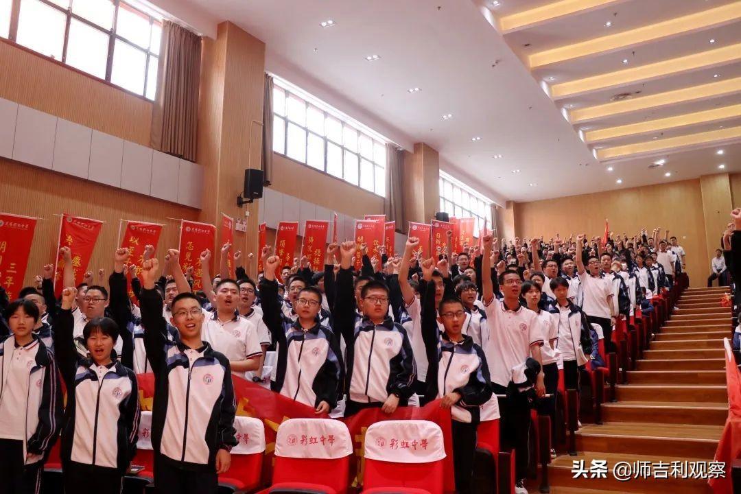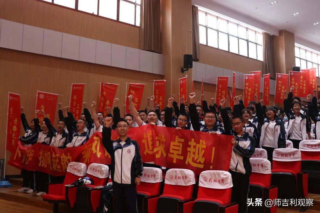 咸阳彩虹中学执行校长张争趣、副校长高辉为高2024届清北班授旗,班主任代表班级接旗。清北班全体成员起立,喊出他们的铮铮誓言。同学们用响亮的呐喊声,显示出他们的自信与决心。