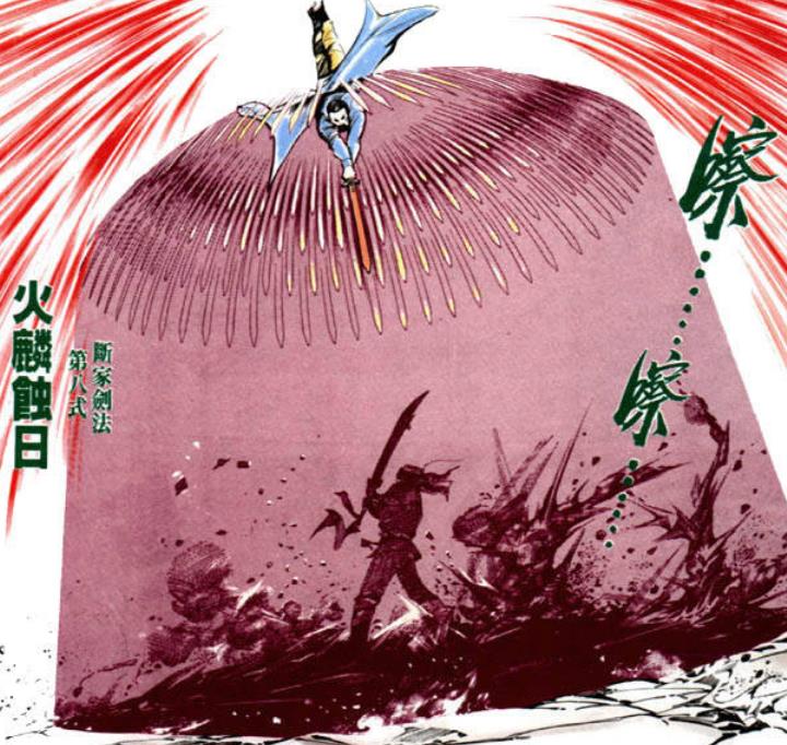 只可惜这门武学虽然拥有极高的名气,但是品级不高,威力也一般,是一门二流剑法,漫画中的蚀日剑法出场次数虽然很多,但是基本没有战胜过敌人,第一部中它甚至被年仅十岁的聂风破掉,是我今天要说的五种火系武功中最弱的一个。