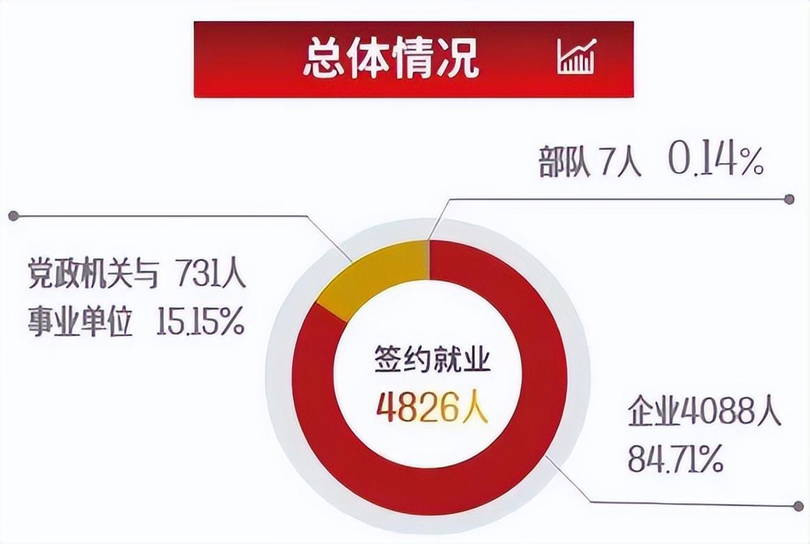 毕业生主要就业行业分布在“信息传输、软件和信息技术服务业”、“制造业”、“教育”、“金融业“、“科学研究和技术服务业”。签约就业总数为4826人,比例为51.77%。
