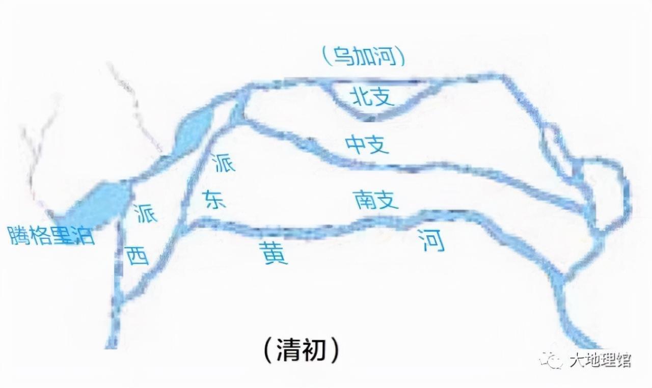 南河(即现今之河道)在当时为次河道,北河为主河道。以之乌拉河-乌加河为河道,呈一抛物线形沿狼山山脚下东流。