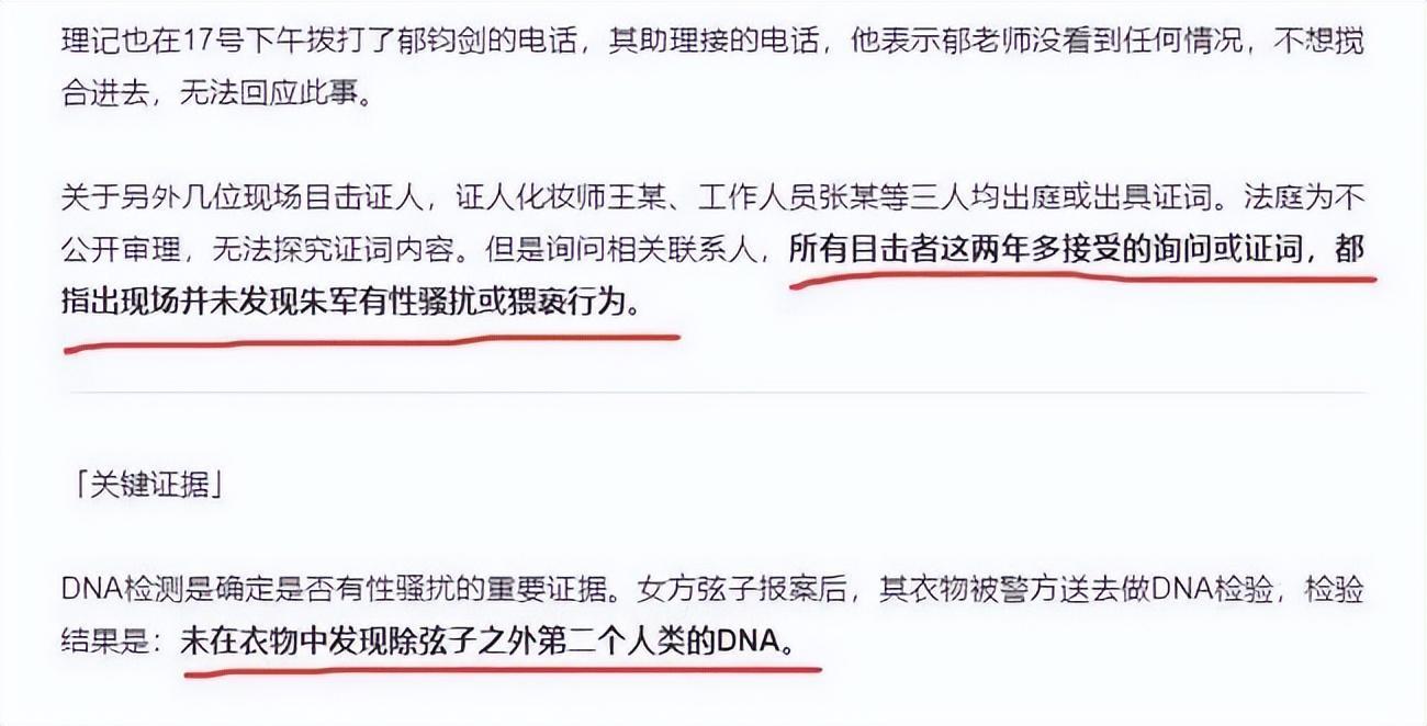 最关键的是,警方从弦子的衣服里,并没有找到朱军的 DNA和指纹,也就是说,弦子根本就没有证据,在这场持续三年的案件中,弦子不仅没有任何物证,甚至就连人证都没有。
