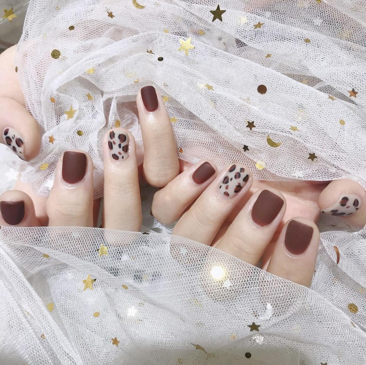今年美甲界的网红,一定少不了豹纹美甲啦~磨砂质感的豹纹美甲,有着更为逼真的皮草质感,让原本带着“土味”的豹纹,显得很有高级时髦感,搭配上纯色美甲,非常好看哦~