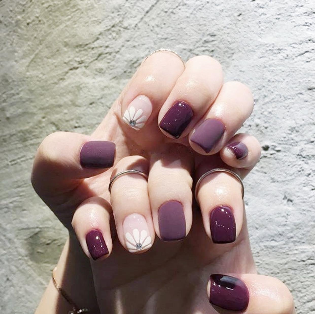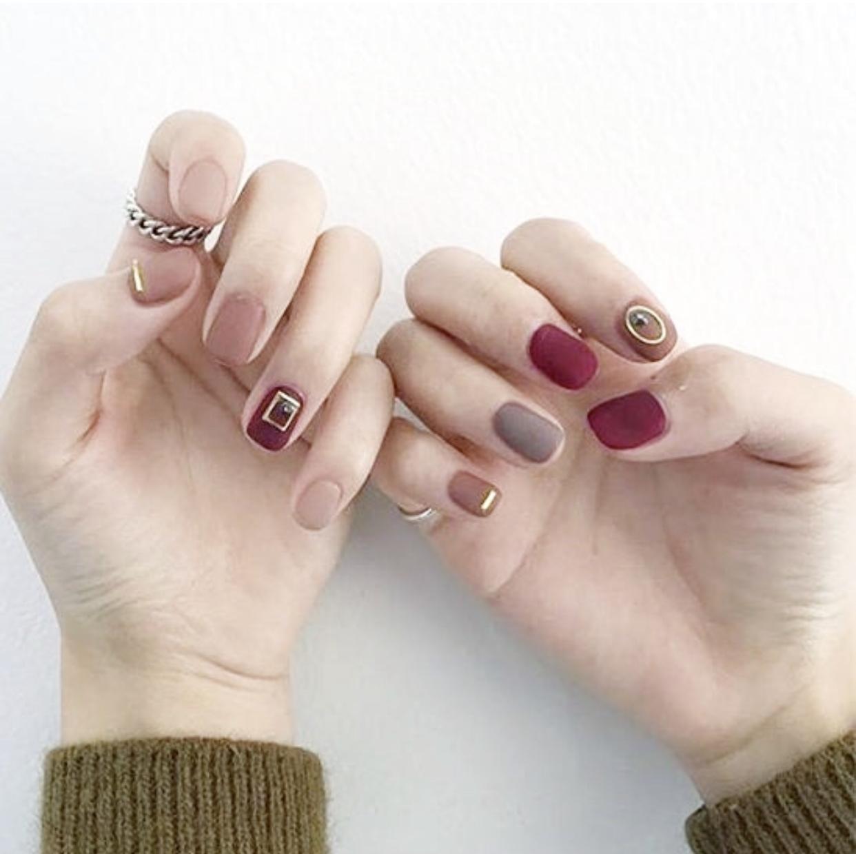 磨砂质感的跳色美甲,有着优雅时髦的气质,简单干净的甲面也符合了女生们时常需求,是完全没有负担的美甲哦~