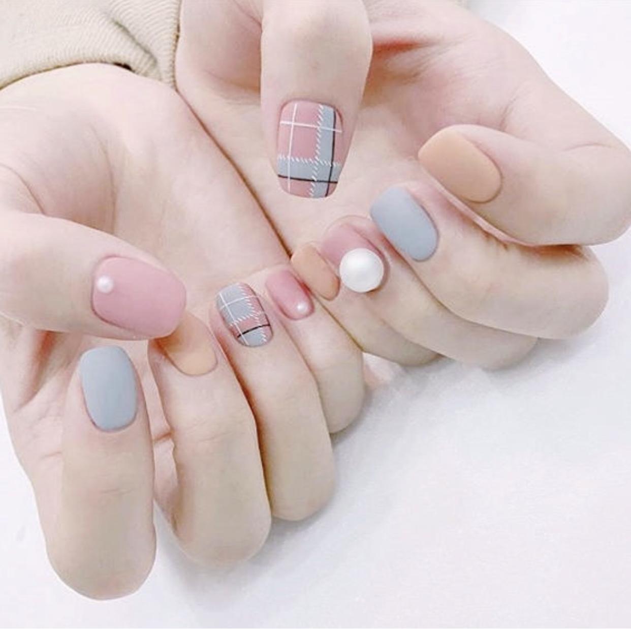 用淡雅的颜色打造的磨砂美甲,会显得格外温婉动人,看起来非常舒服,加上单颗的珍珠饰品,会让指尖呈现出一种极致优雅的气质,好看又不浮夸,非常厉害哦!