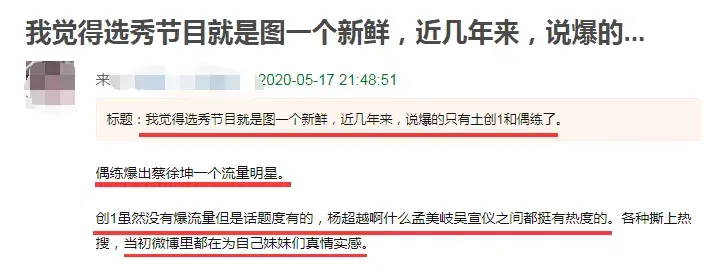 但现实情况是真的出道了观众们也很难看见努力,选手实力也并没有太出众。