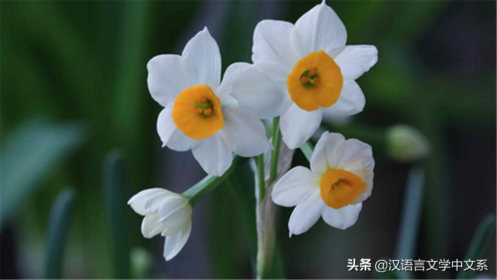 水仙别名:凌波仙子、玉玲珑、金盏银台、姚女花、女史花、天葱、雅蒜