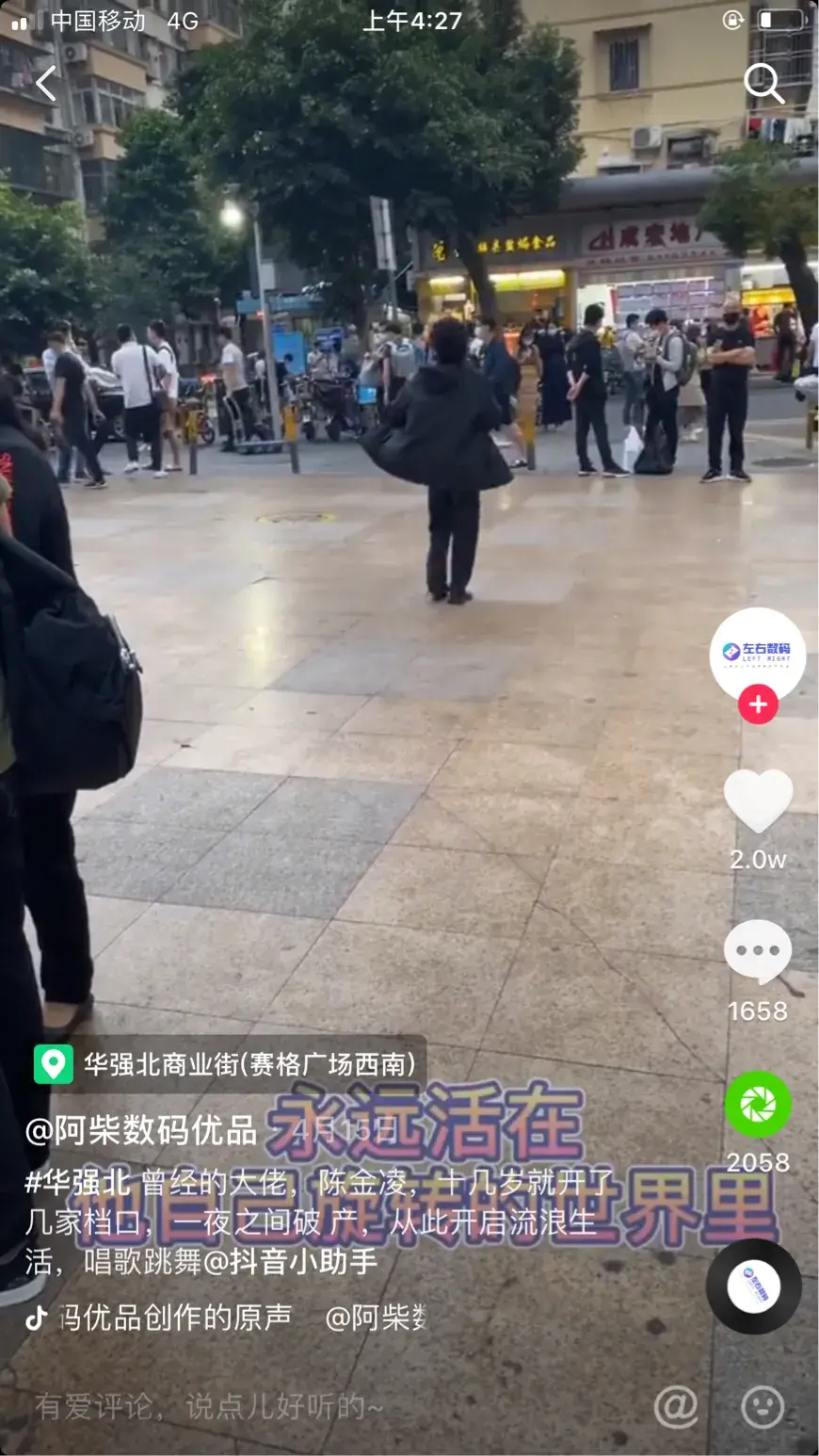 在深圳,网络上流传着这样的一个励志又悲惨故事,16岁陈金凌(陵)在深圳华强北卖山寨机,一度身家几千万,最后因版权问题被查,自己老婆卷款后和别人跑了,破产后他就疯了,天天路边喝酒睡觉笑看人生百态,在人群中疯疯癫癫的摇头晃脑,成了一个可怜的网红,但是一个不能流量变现的网红。简单来说就是叱咤一时的手机王子变疯子,痴痴呆呆的。