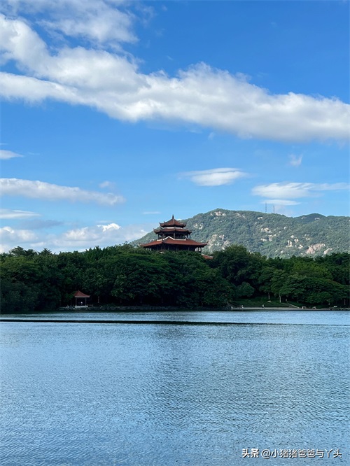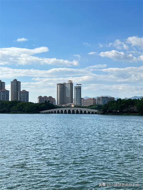 从公园南大门,远远望去就是公园最高处的“刺桐阁”和“二十一孔桥”。