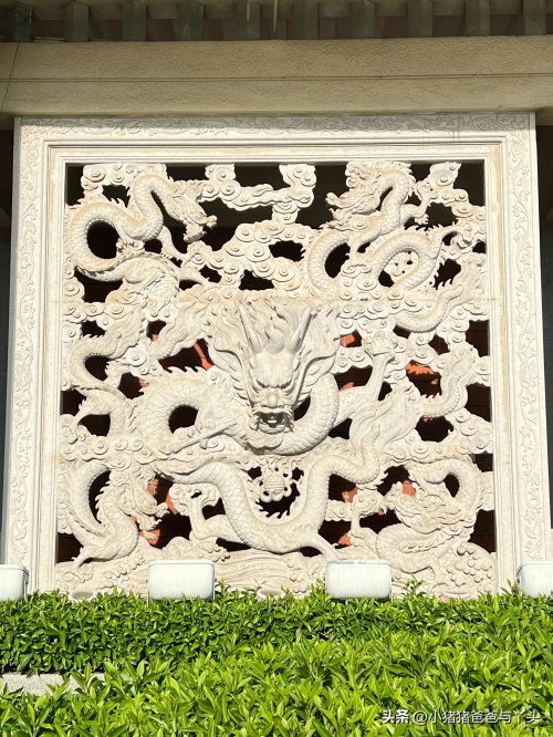 公园正大门,两只狮子,两个龙屏,成双成对。