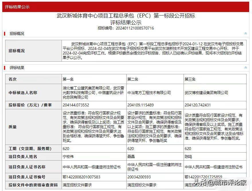 近日武汉新城体育中心中标结果公示,中标金额约为20亿元,工期620天。项目计容总建筑面积约为12.6万方,包含综合体育馆、全民健身中心、运营服务中心及配套用房等。该项目建成后,将成为武汉新城最大的全民体育运动场所。